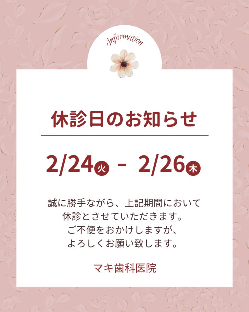 2月24日(火)から26日(木)まで休診とさせていただきます。